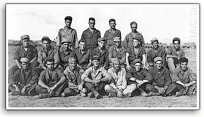 1st Row; L. to R. Pvt. Marshall, Pfc. Lewis, Pfc. Scheurer, Cpl. Person, Pvt. Hermenze, Pfc. Mosley, Cpl. Jadack, Pfc. Palozie. 2nd Row; L. to R. Cpl. King, Pfc. Kelly, Pvt. Bennett, Pfc. Donlin, S/Sgt. Cough, Pfc. Rabinko, Pf. Brezenski, Pvt. Valante, Pfc. Fioretti. 3rd Row; L. to R. 1st Lt. Chamberlain Jr., Pfc. Dodge, Pfc. Terris, Pfc. Oloff. |