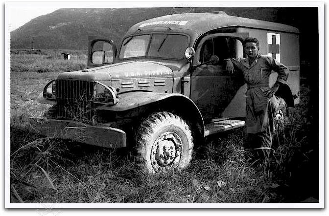 Dodge ambulance 4 X 4 awaits possible jump injuries near